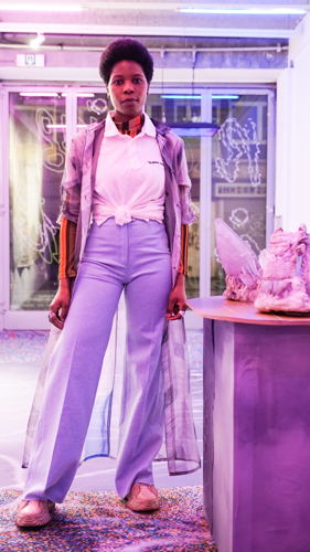 Eden Tinto Collins’ practice cuts across a variety of genres – from epic narratives to music videos to documentary – to create fantastic universes on the brink of myths and the burlesque, emphasizing the hyperconnectivity of our digital age. Her films, poetry, installations, paintings and performances are rooted in “wor(l)ds without failure, low tech, DIY, and nourished by surrealism, magic realism, science fiction and cosmology".